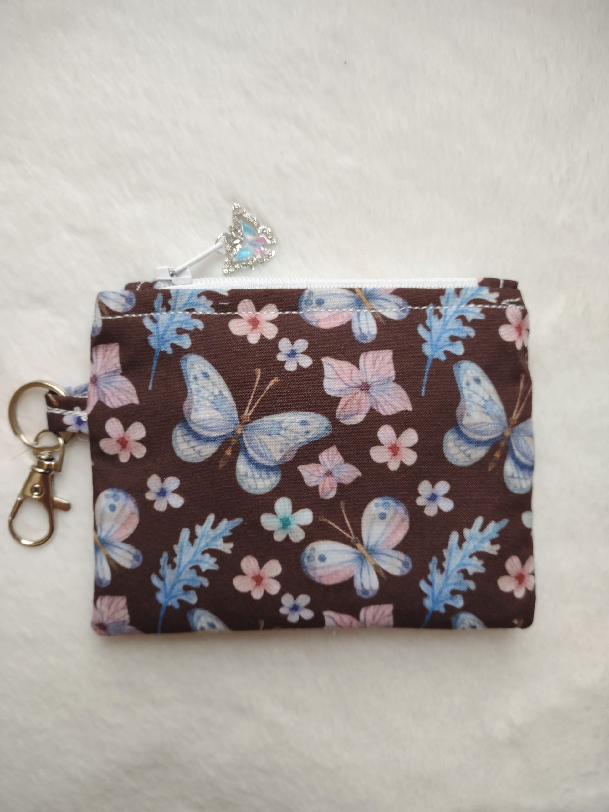 "Butterfly Summer" Brown Cotton Butterfly Print Keychain Coin Purse