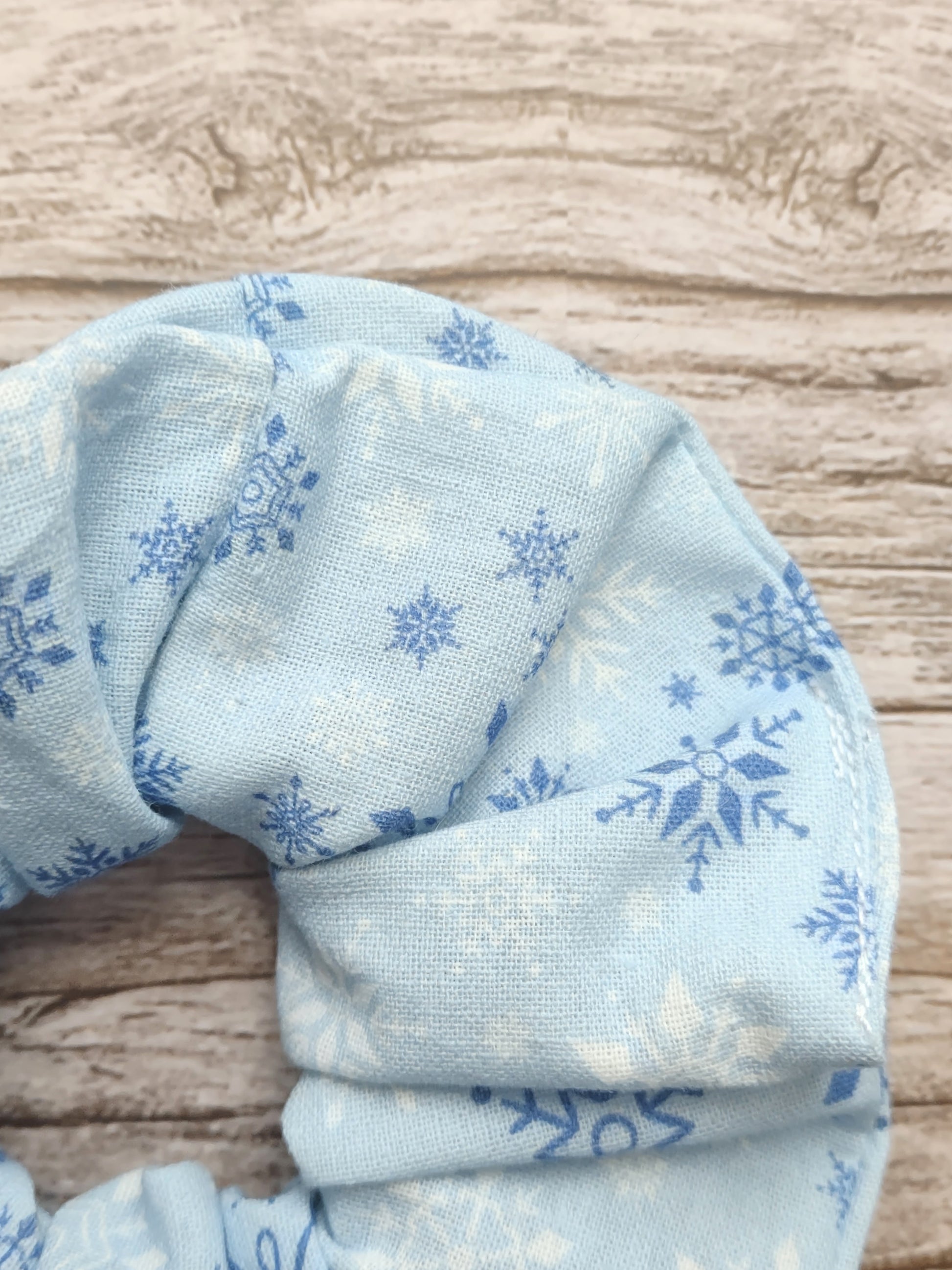 "Festive Flakes" Light Blue Snowflake Print Hair Scrunchie (Limited)
