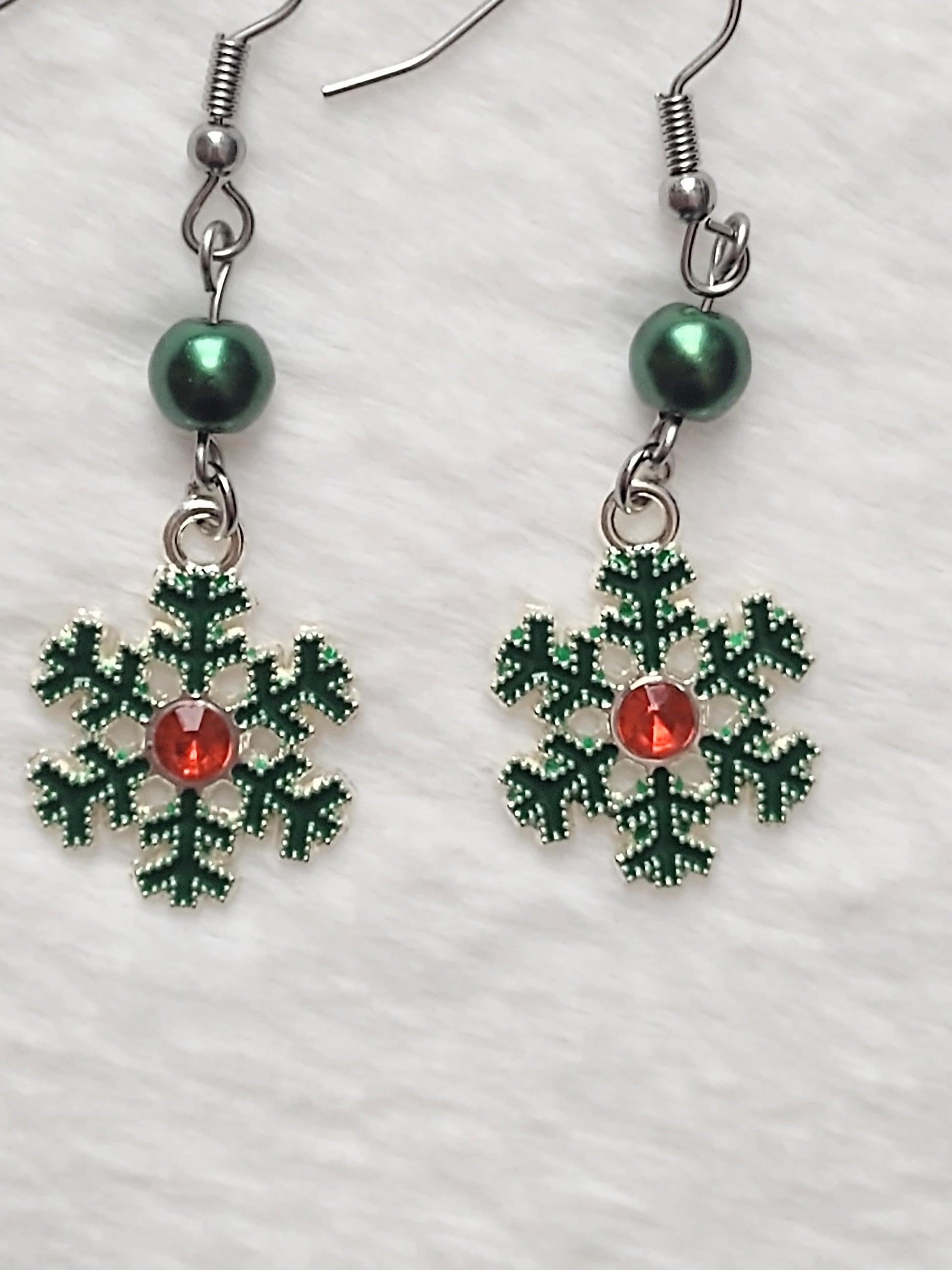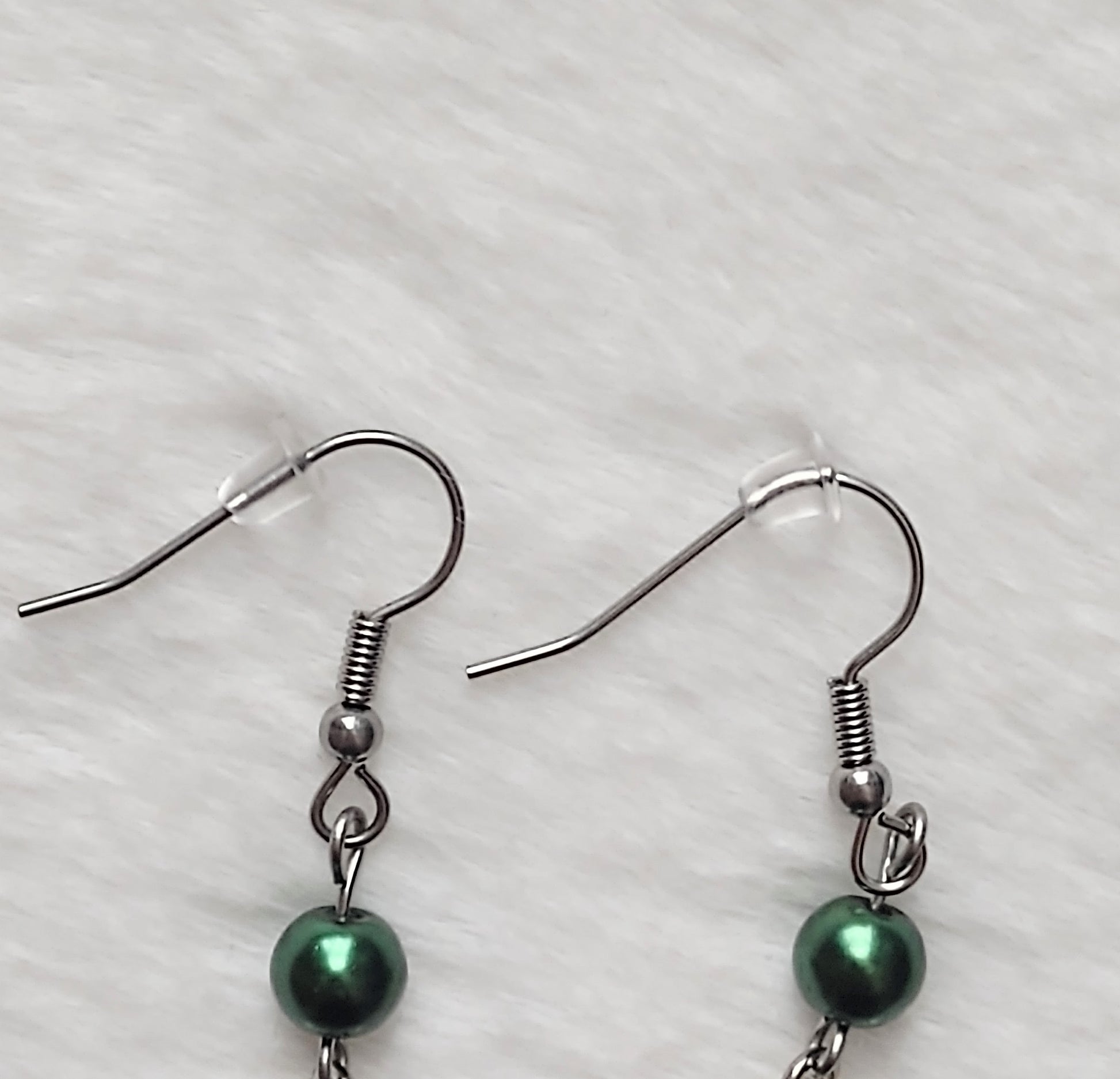 These earrings are adorable and perfect for getting you into the holiday spirit. These would be the perfect earrings to wear to your holiday party. They would also make the perfect stocking stuffer to put a smile on someone's face. These earrings are on silver stainless steel earring backs. They have a green glass pearl bead attached to them to add some extra color. I offer 3 different options for the earring backs so you can find the style that is perfect or you.