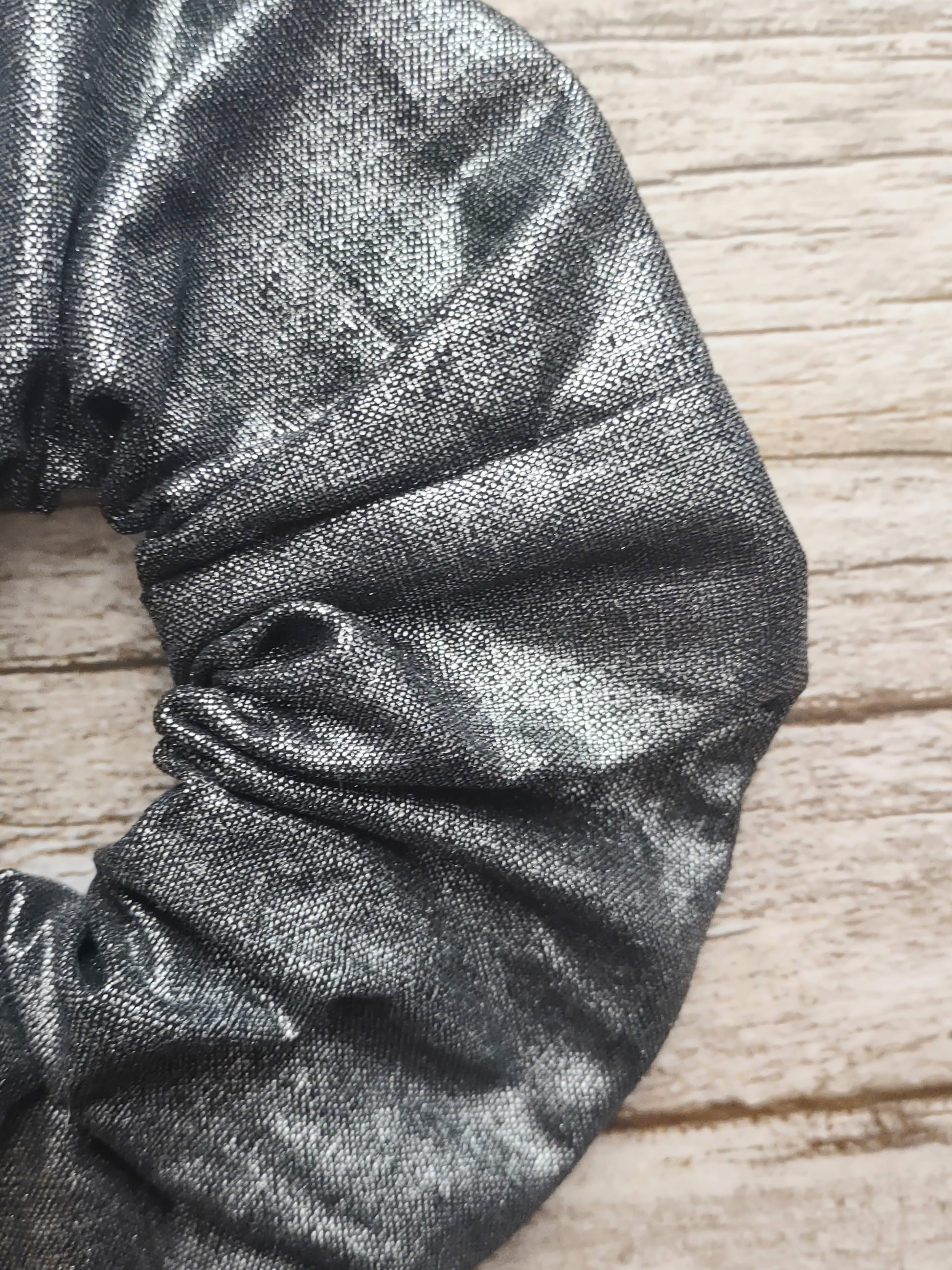 "Metallic Midnight" Metallic Black Cotton Hair Scrunchie