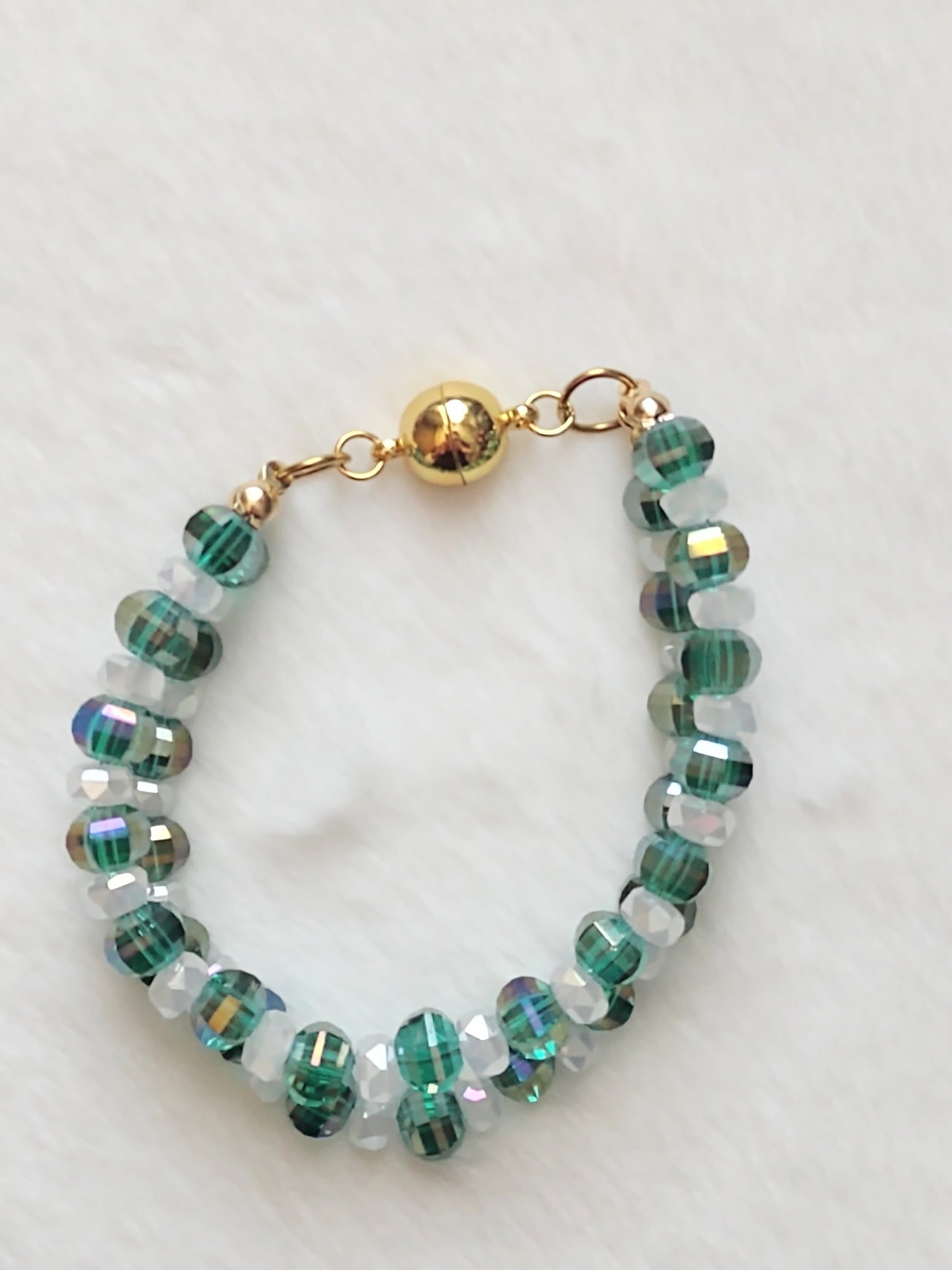 The mixture of red or green beads added with white beads made me think of the peppermints candies that you can buy at the store. These beads are amazing. If you like shimmer and Aurora Borealis beads this gorgeous 2 strand bracelet would be perfect to add to your holiday collection. This bracelet was made with high quality AB glass beads. This bracelet comes in 2 sizes and 2 stunning festive colors that are perfect for the holidays. The shimmer on these beads is hard to capture in a picture. The shimmer on these beads in person is amazing.