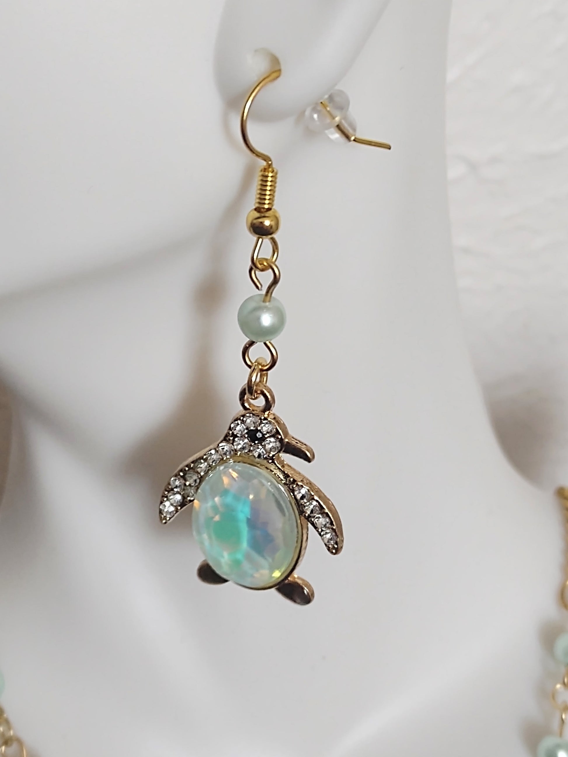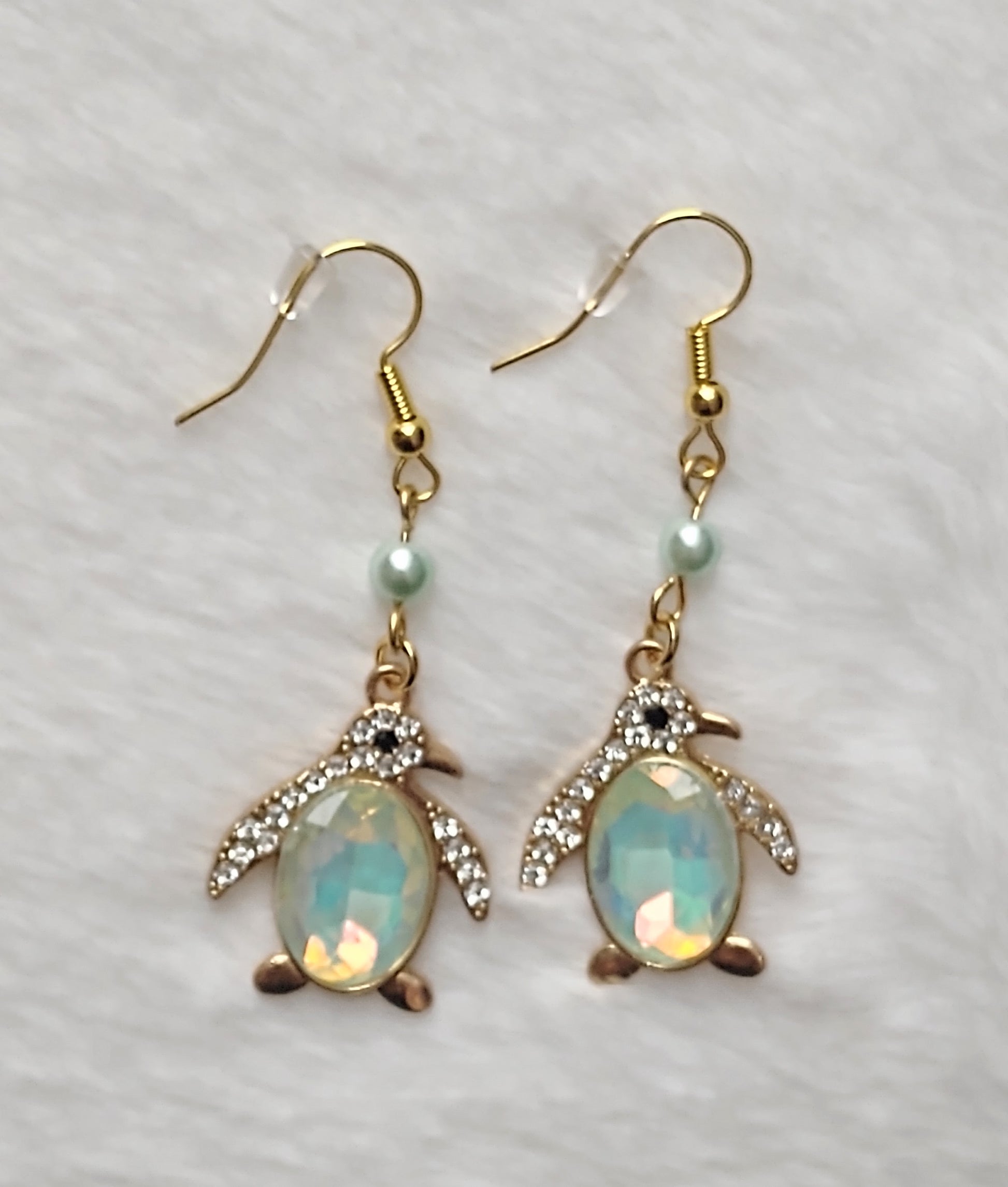 These earrings are adorable and perfect for the holiday and winter season. These penguin earrings are sure to make their way into your heart. The mint green glass pearl bead adds a little extra color to the earrings. If you are looking for something cute and unique for the holiday season these earrings are perfect to add to your holiday jewelry collection. These earrings come with 3 different back options.