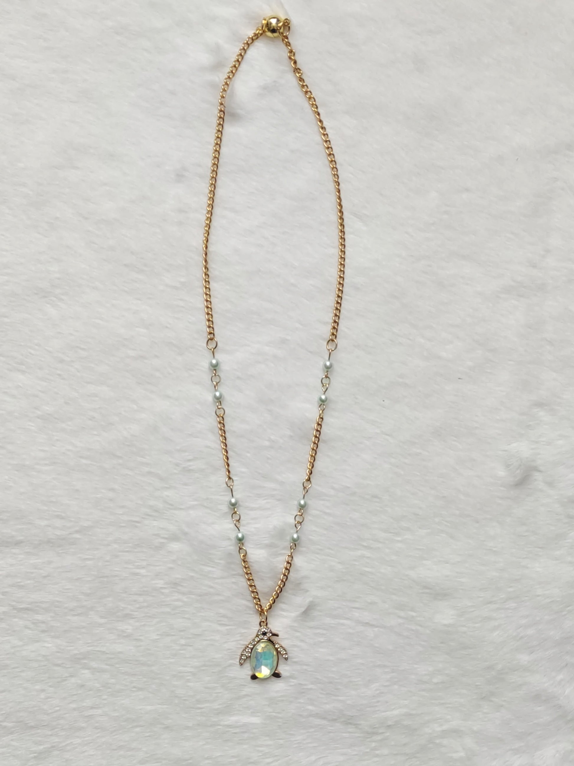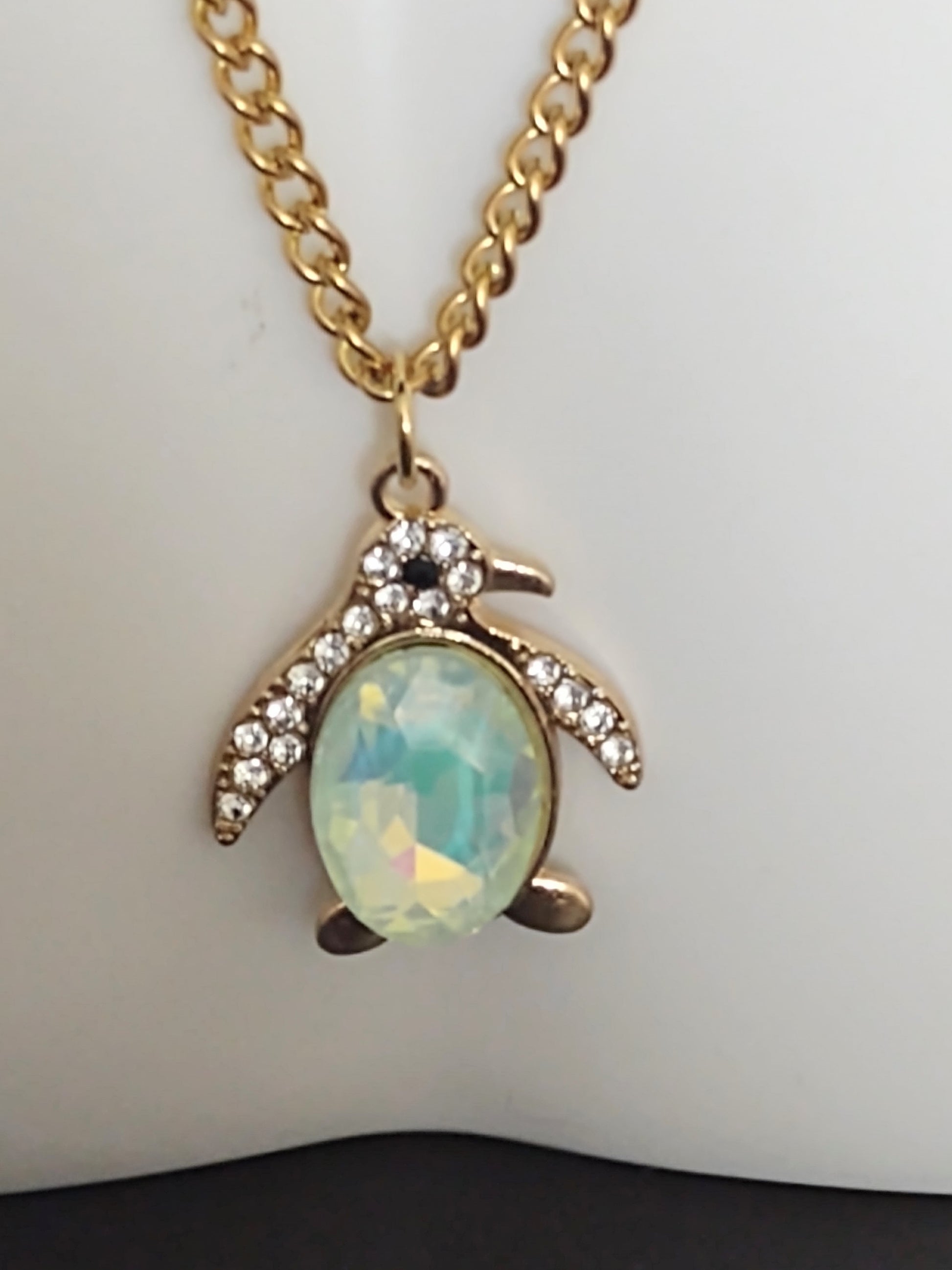 "Winter Mint" Gold Stainless Steel Penguin Necklace